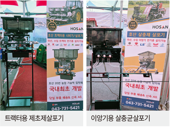 At this exhibition, new products were introduced, including an insecticide sprayer that precisely and evenly sprays insecticides on seedbeds at the same time as transplanting rice, a seeding fertilizer sprayer for field crops that incorporates Korea’s leading fertilizer technology, and a herbicide sprayer that can spray at a 180-degree angle using a double fan.